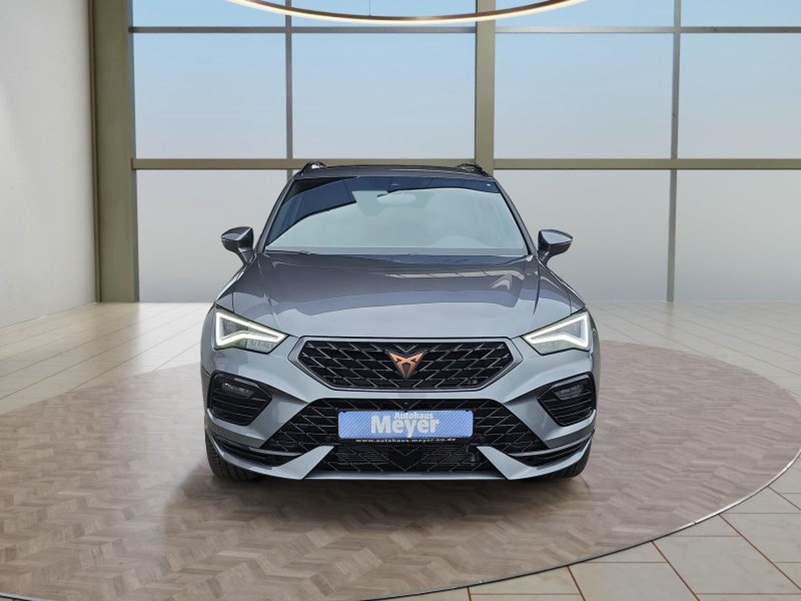 Neben der Technik begeistert der CUPRA Ateca auch optisch mit einem sportlichen Erscheinungsbild: matt-schwarze Leichtmetallfelgen in 19 Zoll, metallischer Lackierung in elegantem Grau und markante Cupra-spezifische Designelemente verleihen dem Fahrzeug einen unverwechselbaren Look.