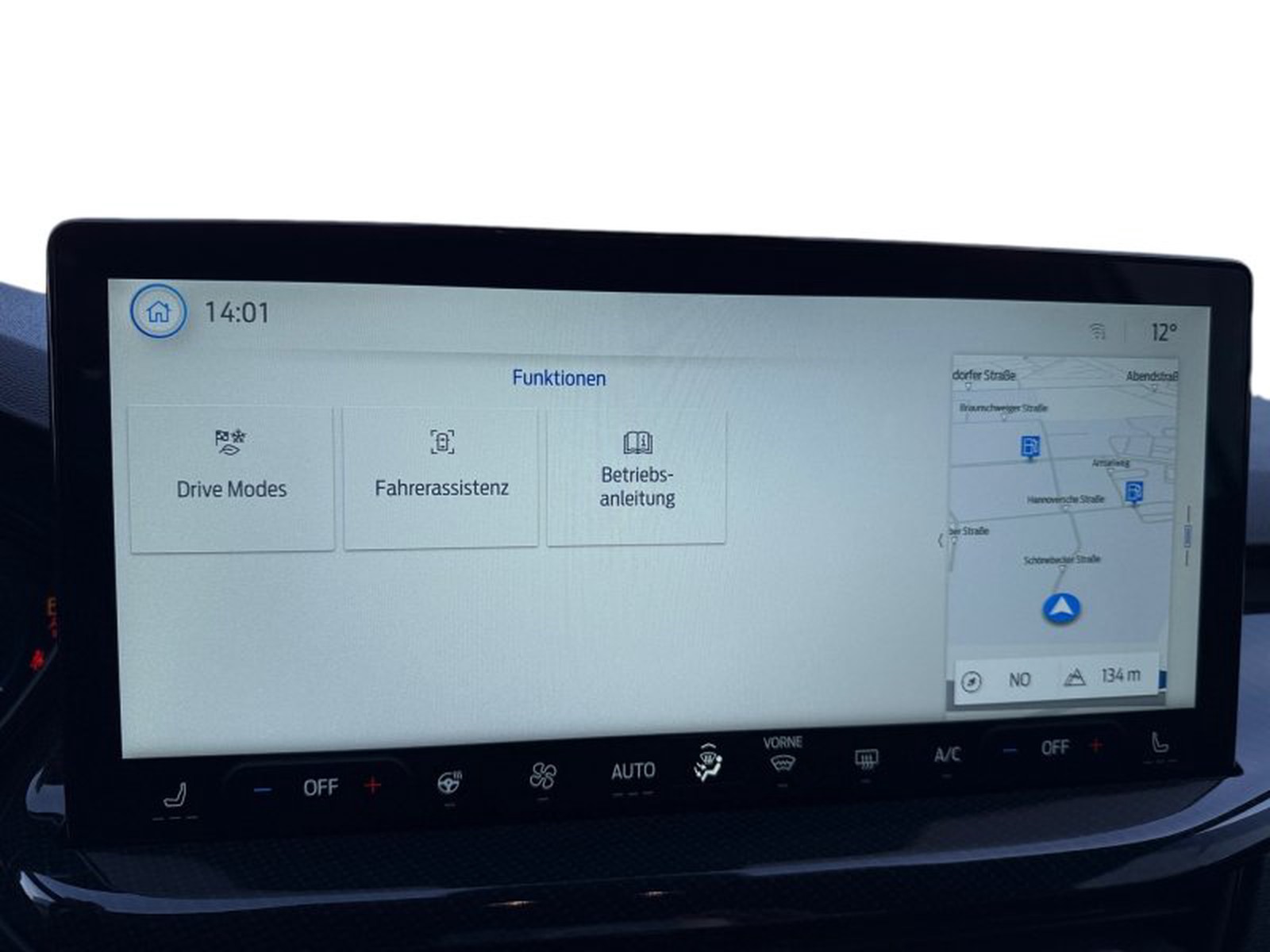 Das Interieur besticht durch sportliche Sportsitze vorne, eine zweizonen-Klimaautomatik sowie ein digitales Kombiinstrument mit 12,3 Zoll Farbdisplay. Das Audio-Navigationssystem Ford SD inklusive Ford SYNC 4 ermöglicht intuitive Bedienung über Touchscreen oder Sprachsteuerung und unterstützt Apple CarPlay sowie Android Auto – so bleiben Sie jederzeit vernetzt und gut informiert.