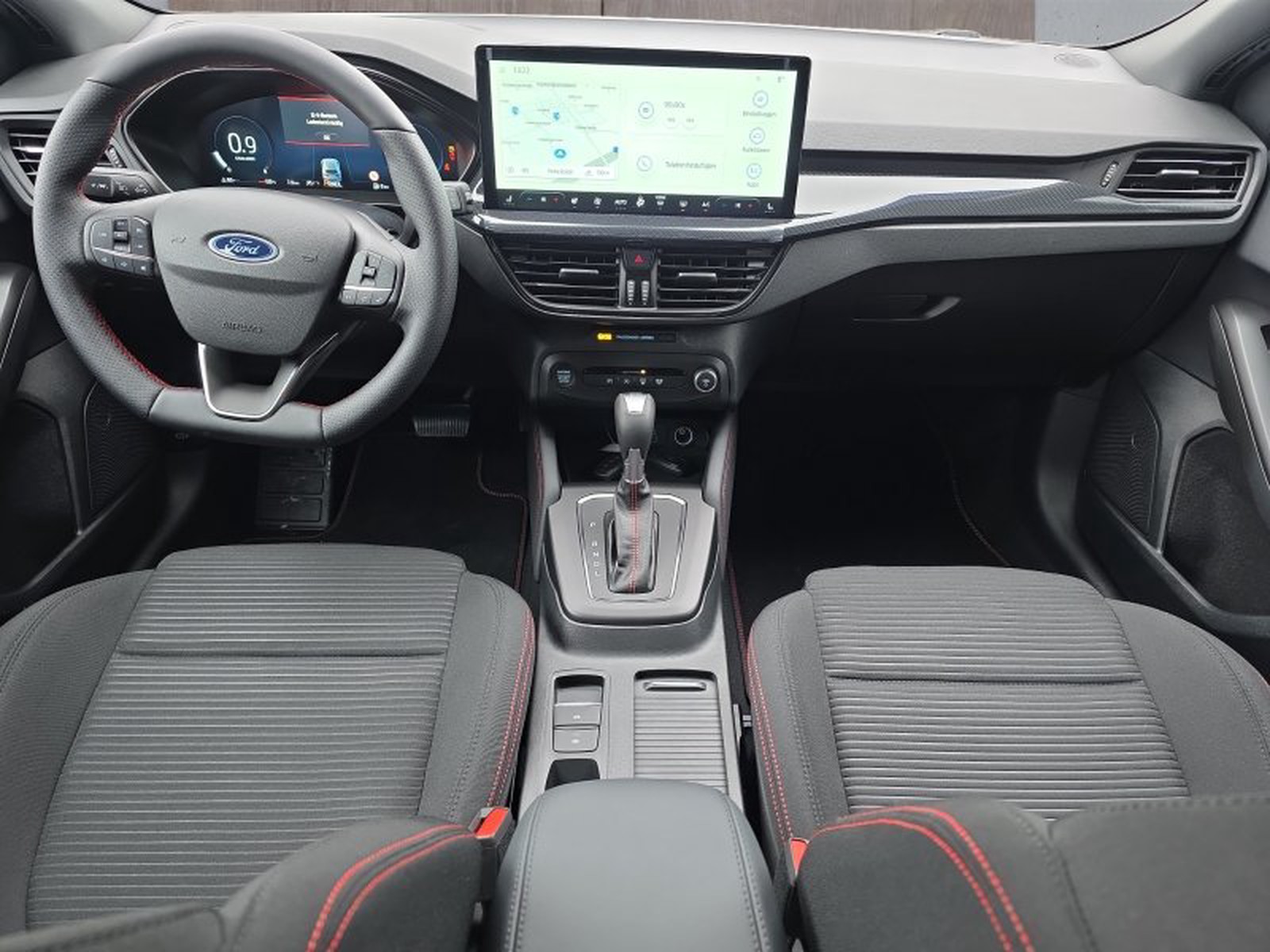 Das Interieur des Ford Focus ST-Line X überzeugt mit hochwertigem Design und durchdachter Funktionalität: Sportsitze vorne bieten optimalen Halt bei Kurvenfahrten, das digitale Kombiinstrument mit 12,3 Zoll Display liefert alle wichtigen Informationen übersichtlich auf einen Blick. Das moderne Audio-Navigationssystem mit Ford SYNC 4 verbindet nahtlos Smartphone-Funktionalitäten via Android Auto oder Apple CarPlay – so bleiben Sie stets verbunden.