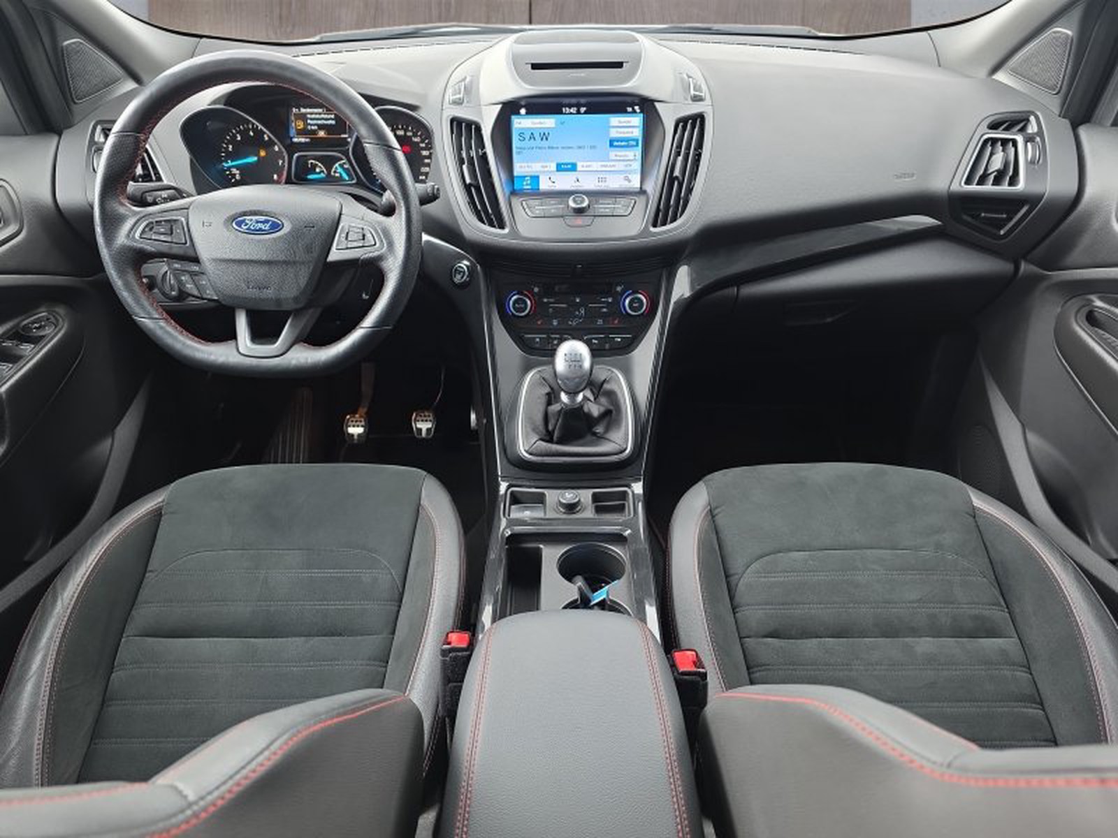 Die Ausstattung des Ford Kuga ST-Line lässt keine Wünsche offen: Komfortable Sportsitze in Stoff-Leder-Kombination mit Sitzheizung vorne sorgen auch an kalten Tagen für angenehme Temperaturen. Das Winterpaket umfasst zusätzlich beheizbare Frontscheibe sowie Lenkradheizung – ideal für die winterlichen Straßen rund um Helmstedt. Die Klimaautomatik in zwei Zonen garantiert individuellen Komfort für Fahrer und Beifahrer.
