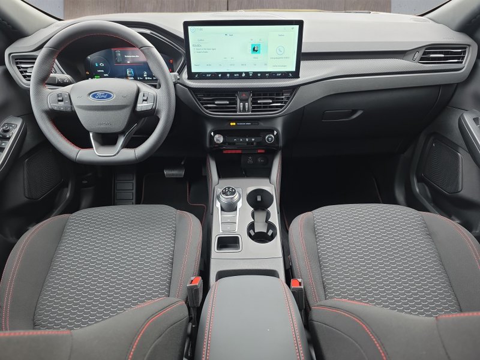 Das Interieur des Fahrzeugs überzeugt durch ein hochwertiges Design mit einem digitalen Cockpit von 12,3 Zoll sowie einem fortschrittlichen Audio-Navigationssystem Ford Sync 4 inklusive AppLink für Android Auto und Apple CarPlay. Das multifunktionale Lederlenkrad mit Sprachsteuerung ermöglicht eine intuitive Bedienung während der Fahrt.