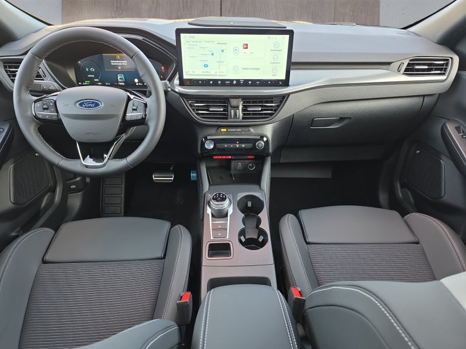 Im Innenraum überzeugt der Kuga mit hochwertiger Premium-Polsterung in Leder-Optik kombiniert mit Stoff sowie einem hochwertigen B&O Premium-Audiosystem mit 700 Watt Leistung. Das 13,2-Zoll-Display ermöglicht eine intuitive Bedienung des Ford SYNC 4 Systems inklusive Navigationsfunktion, Sprachsteuerung sowie Smartphone-Anbindung via Apple CarPlay und Android Auto.