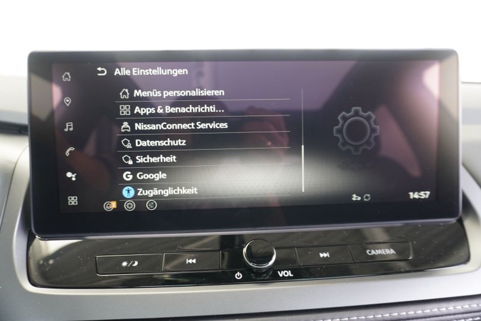 Komfort wird großgeschrieben: Die elektrisch bedienbare Heckklappe ermöglicht bequemes Be- und Entladen des Kofferraums. Innen erwarten Sie teilledere Sitze sowie zahlreiche beheizbare Elemente wie Vordersitze, Multifunktionslederlenkrad und sogar die Frontscheibe mit Thermaclear®. Für Ihre Unterhaltung sorgen das moderne Nissan Connect Navigationssystem inklusive Around View Monitor mit 360-Grad-Kamera sowie Smartphone-Schnittstellen wie Apple CarPlay und Android Auto.