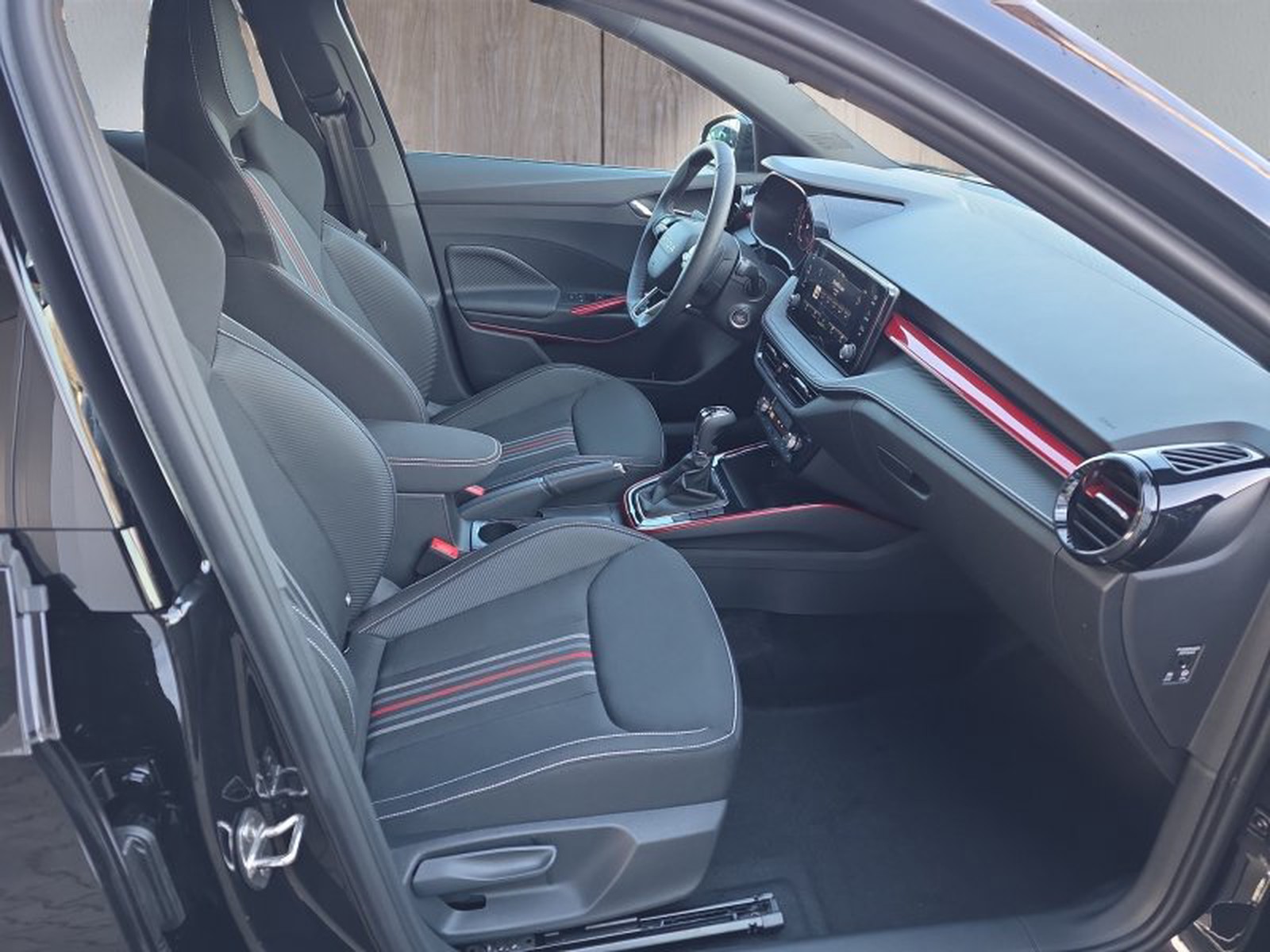 Der Skoda Fabia Monte Carlo besticht durch sein dynamisches Erscheinungsbild in elegantem Schwarz mit sportlichen Akzenten wie schwarzen glänzenden Anbauteilen, einem Dachspoiler und Edelstahlpedalen im Sportdesign. Die 16-Zoll-Leichtmetallfelgen unterstreichen den sportlichen Charakter zusätzlich. Innen erwartet Sie eine hochwertige Ausstattung mit Sportsitzen in Monte Carlo Polsterung sowie Dekoreinlagen in Rot, die dem Interieur einen modernen und zugleich exklusiven Look verleihen.