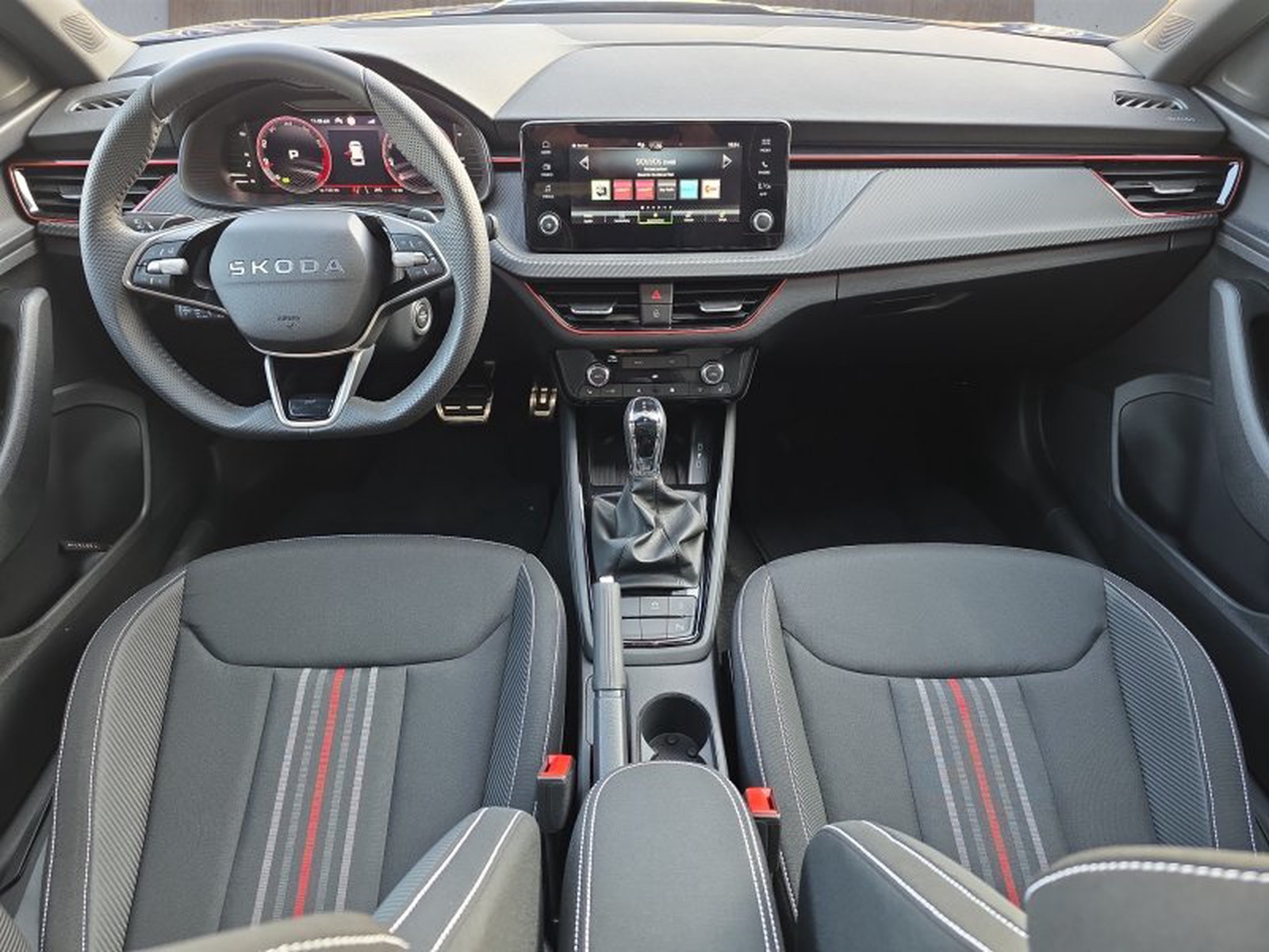 Im Innenraum begeistert der Kamiq Monte Carlo durch Sportsitze mit hochwertiger Monte Carlo Polsterung in Kombination mit Carbon-Optik Dekoreinlagen und roten Akzenten – ein echtes Highlight für Designliebhaber. Die Ambientebeleuchtung schafft eine angenehme Atmosphäre bei jeder Fahrt.