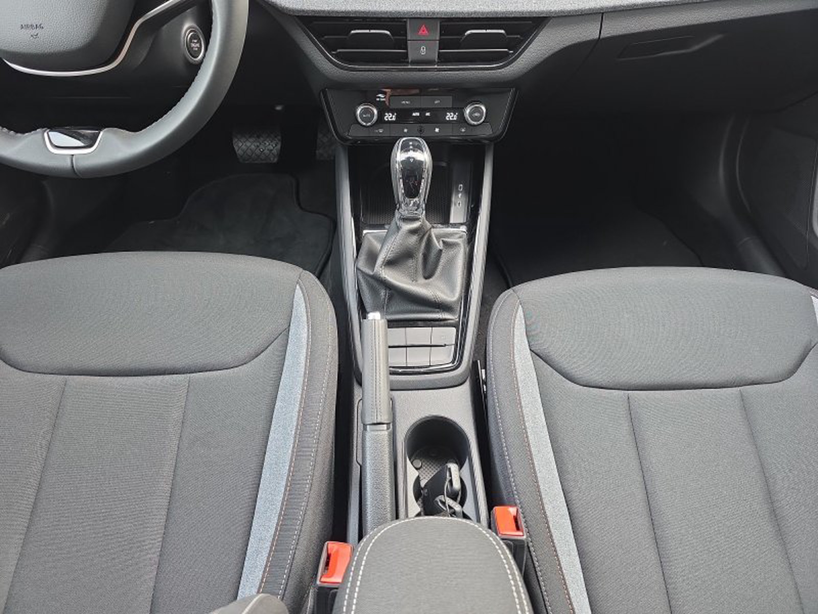 In der Kabine bietet der Kamiq Komfort und Bequemlichkeit mit schwarzen Stoffpolstern mit stilvollen grauen Akzenten. Der Innenraum verfügt über ein digitales Cockpit, das klare Informationen auf einen Blick liefert, sowie ein Multifunktions-Lederlenkrad mit Schaltwippen für eine ansprechendere Fahrt. Die Zweizonen-Klimaregelung sorgt unabhängig von den Wetterbedingungen für optimalen Komfort für Fahrer und Passagiere.