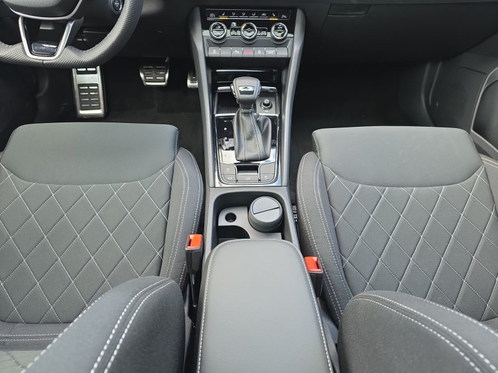 Der Innenraum des Skoda Karoq Sportline besticht durch Komfort und Funktionalität. Das elektrische Panoramaglasdach lässt viel Licht herein und vermittelt ein großzügiges Raumgefühl. Die 3-Zonen-Klimaautomatik ermöglicht individuelle Temperatureinstellungen für Fahrer, Beifahrer und Fondpassagiere. Sitzheizung vorne sowie ein beheizbares Multifunktionslederlenkrad sorgen auch an kalten Tagen für angenehme Wärme.