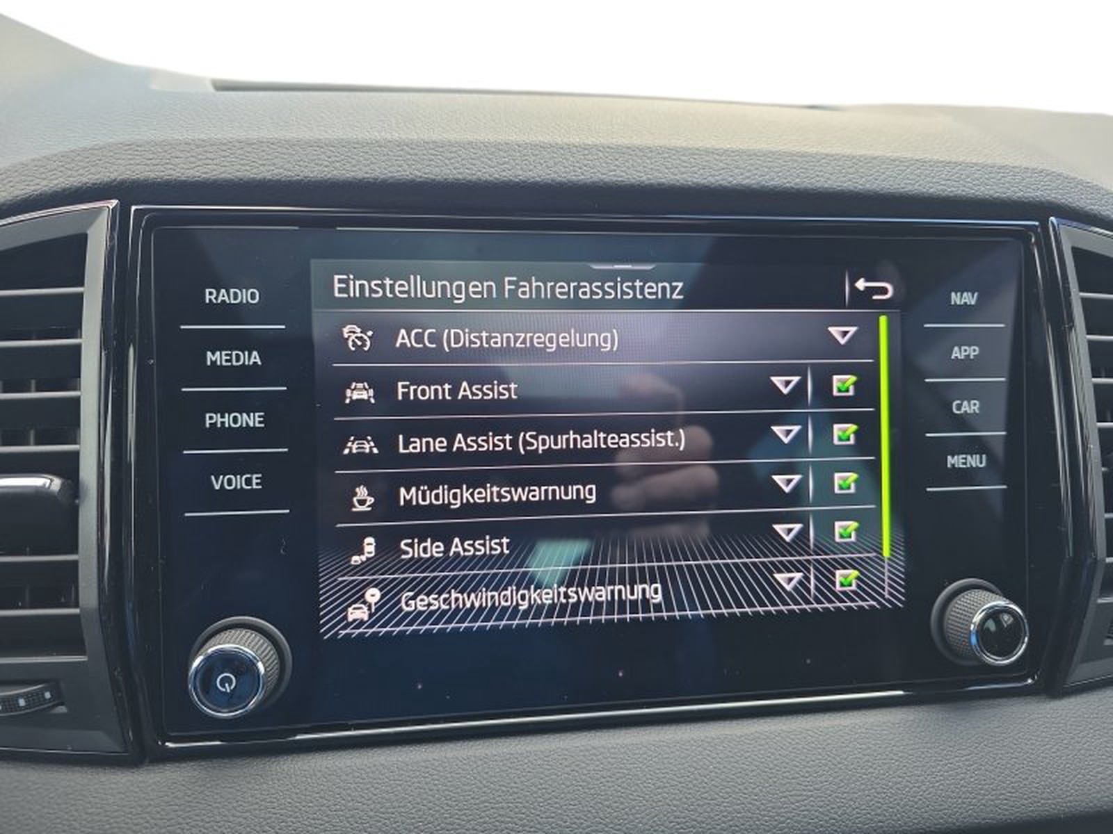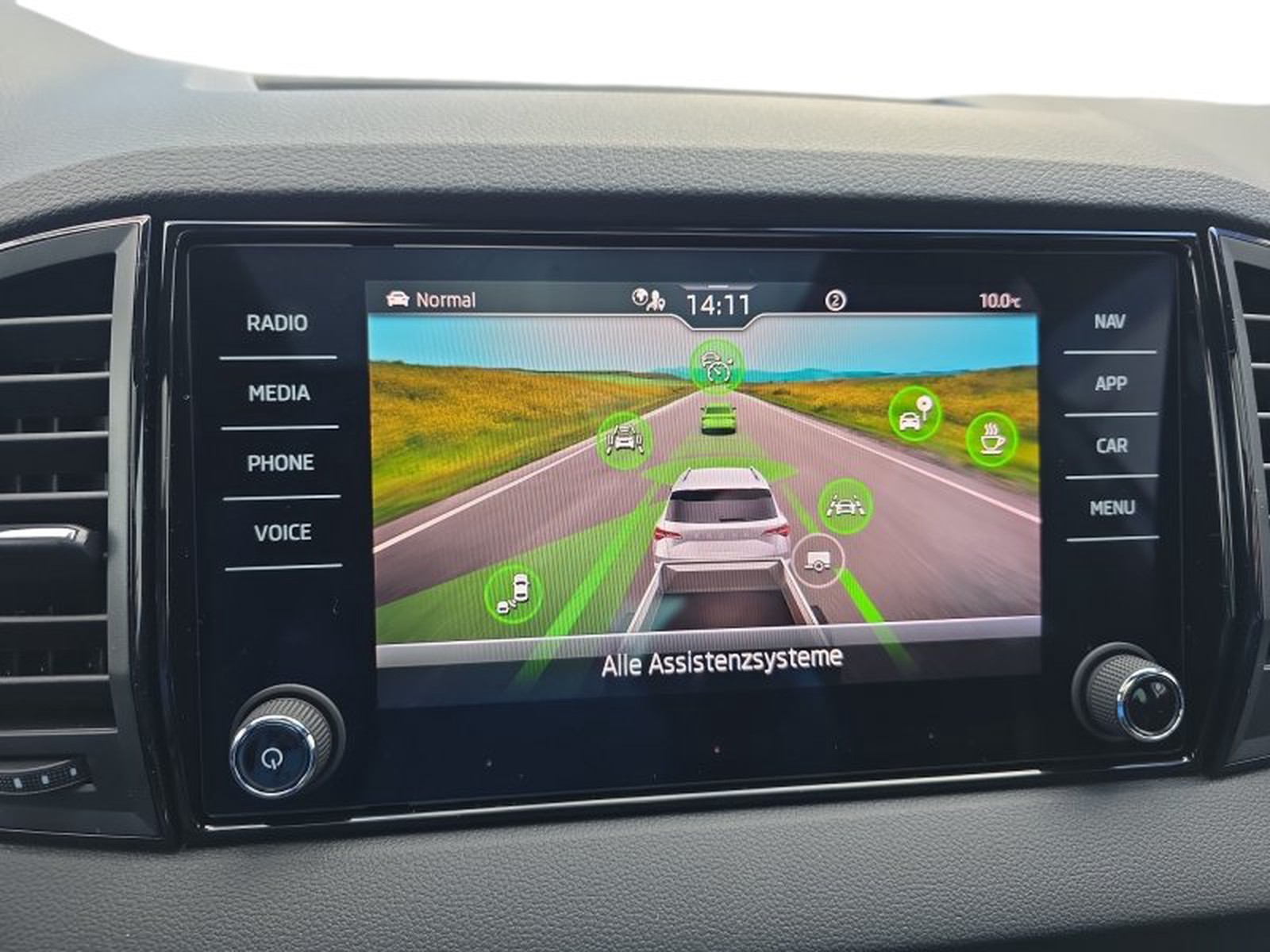 Darüber hinaus bietet der Skoda Karoq zahlreiche Assistenzsysteme wie Travel Assist mit adaptivem Spurhalteassistenten, Notfall- und Stauassistent sowie Spurwechselassistent (Side Assist). Adaptive Abstandsregelung (ACC) inklusive Geschwindigkeitsbegrenzer erhöht die Sicherheit auf langen Strecken oder im Stadtverkehr.
