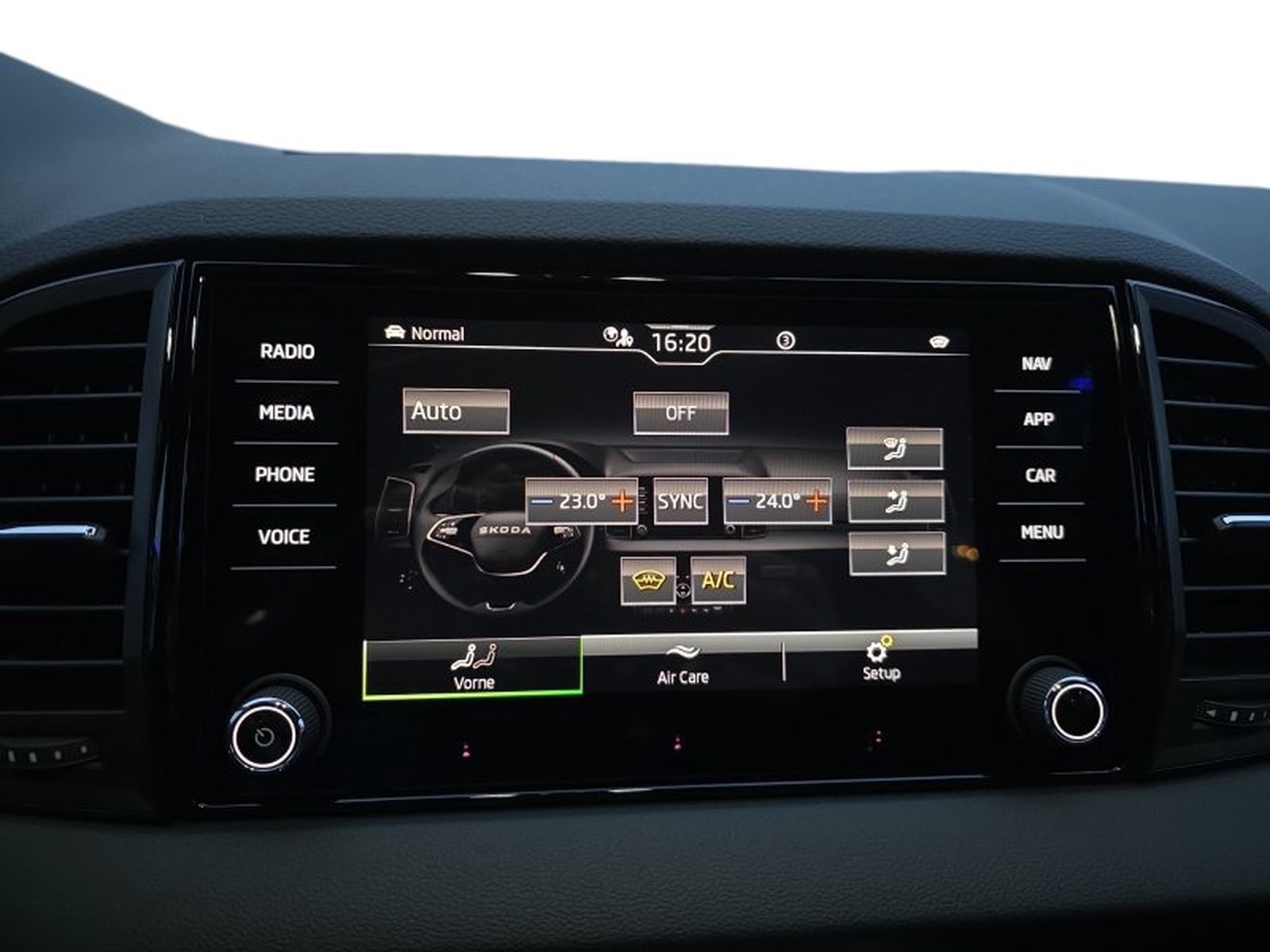 Das Infotainment-System mit Sprachsteuerung, Wireless SmartLink für Apple CarPlay und Android Auto sowie Smartphone-Induktionsladen sorgt dafür, dass Sie stets vernetzt bleiben können. Die Climatronic Zweizonen-Klimaanlage ermöglicht individuelle Temperatureinstellungen für Fahrer und Beifahrer.