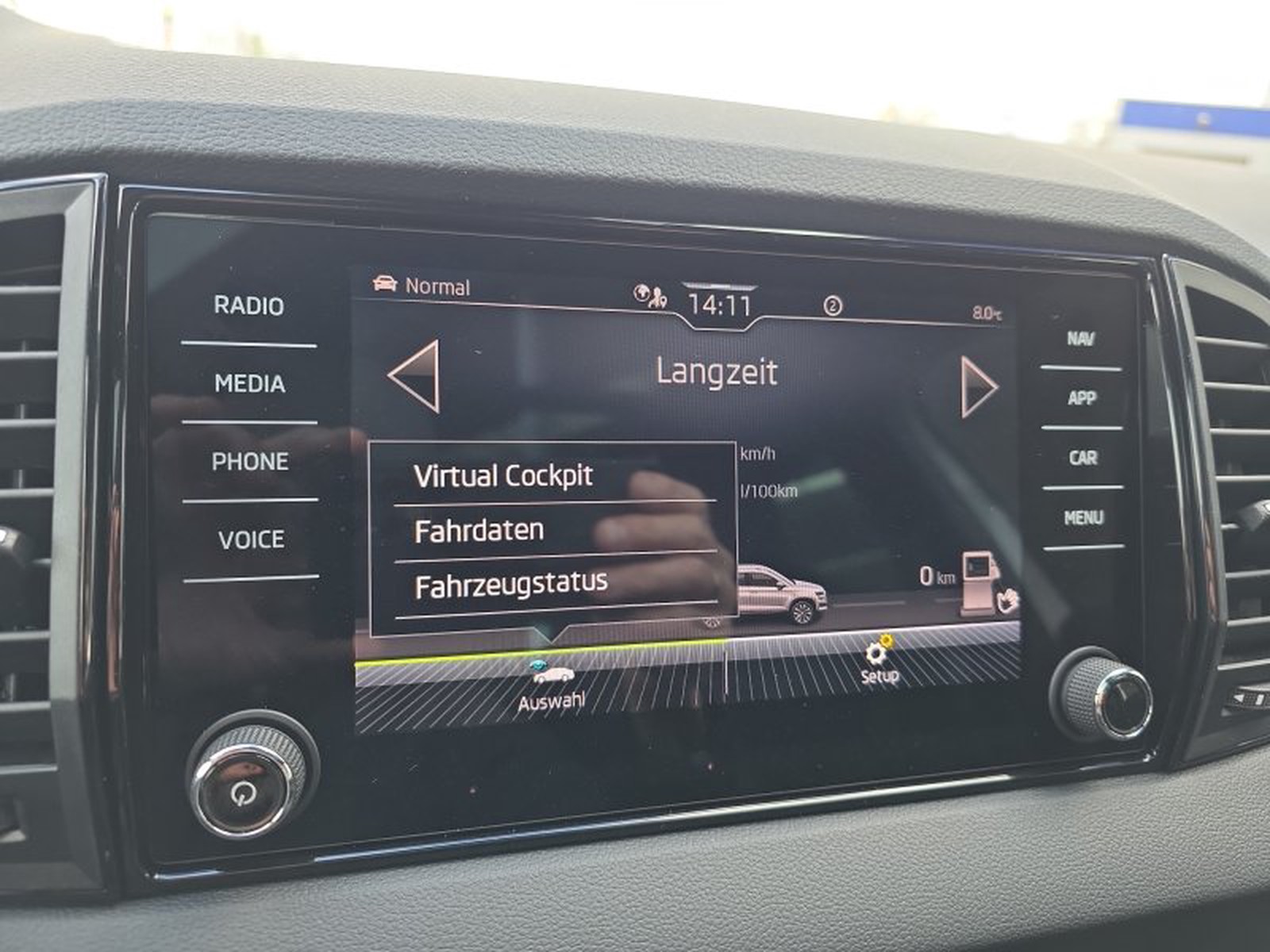 Die Ausstattung des Skoda Karoq umfasst außerdem ein Virtual Cockpit mit digitalem Kombiinstrument, ein Navigationssystem sowie Matrix-Voll-LED-Scheinwerfer für optimale Sichtverhältnisse auch bei Nachtfahrten. Die drei Zonen-Klimaautomatik garantiert angenehme Temperaturen für alle Insassen. Zusätzlich ist das Fahrzeug mit einem Winterpaket inklusive Sitzheizung und beheizbarem Lederlenkrad ausgestattet – perfekt für kalte Tage.