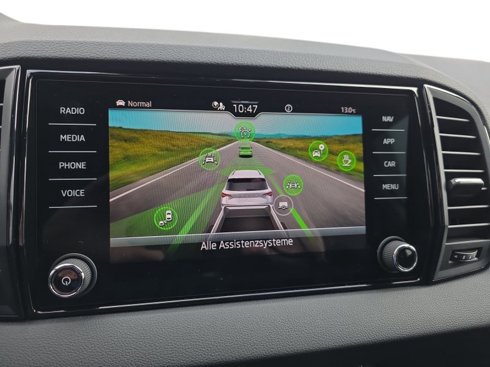 Komfort wird im Karoq großgeschrieben: Ein elektrisches Panoramaglasdach lässt viel Licht in den Innenraum, während die 3-Zonen-Klimaautomatik für angenehme Temperaturen sorgt. Das Virtual Cockpit sowie ein Navigationssystem mit Touchscreen bieten modernste Infotainment-Funktionen inklusive Apple CarPlay und Android Auto. Sicherheitssysteme wie der adaptive Tempomat (ACC), Spurwechselassistent (Side Assist), Notfallassistent sowie eine Rückfahrkamera mit Parkassistent vorne und hinten gewährleisten höchste Sicherheit im Straßenverkehr.