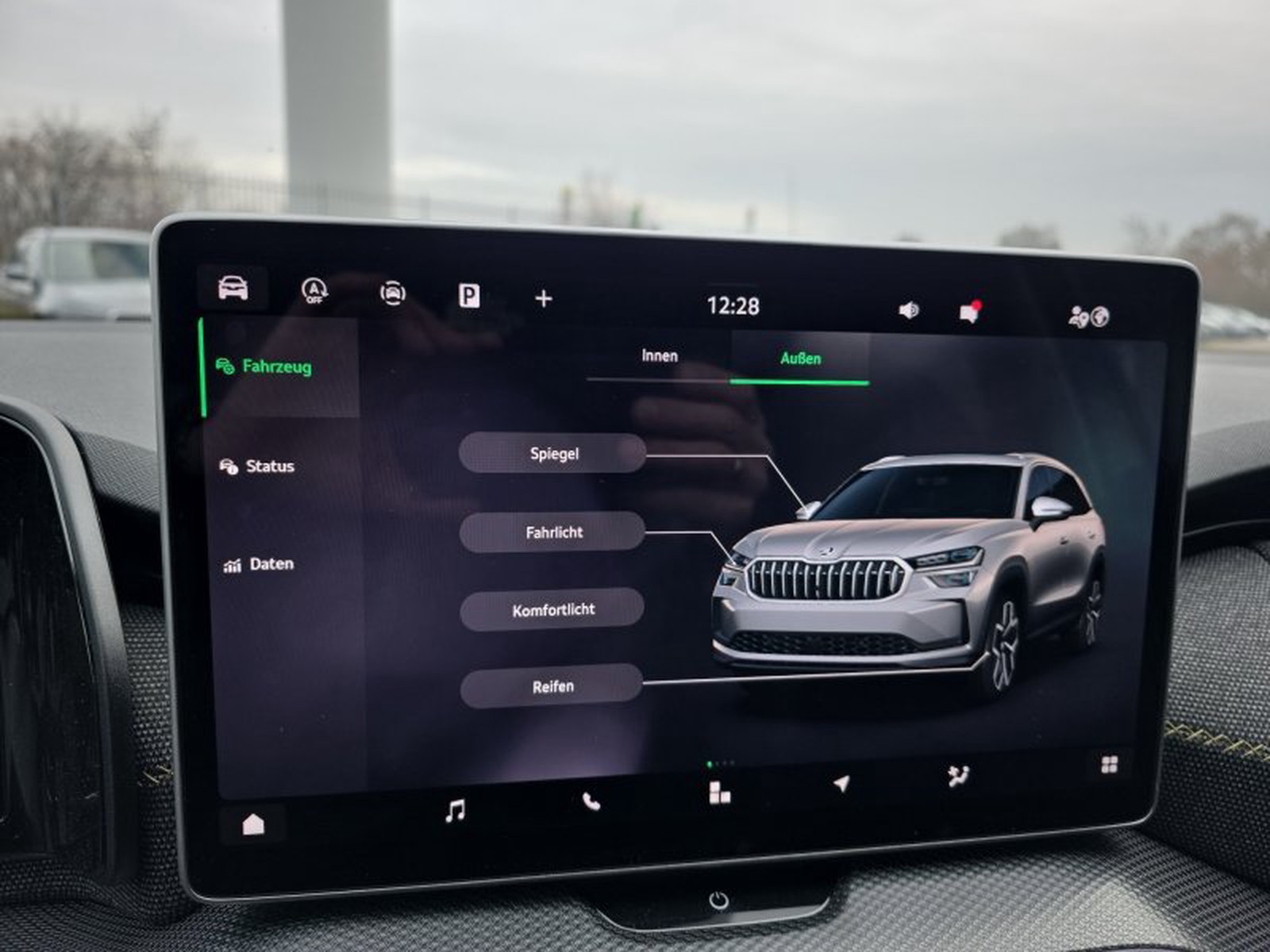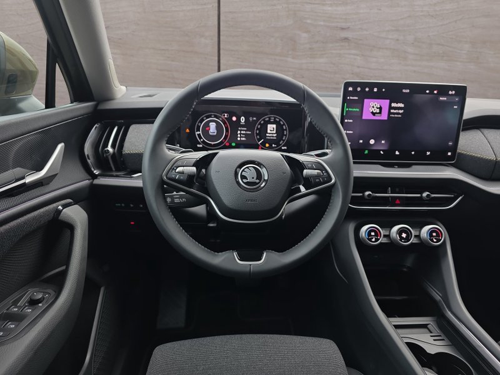Das Interieur überzeugt mit einem digitalen Cockpit plus Infotainment-Display von 13 Zoll Größe sowie einer dreizonigen Klimaautomatik für individuellen Komfort aller Insassen. Das Multifunktionslederlenkrad mit Schaltwippen sorgt für sportliches Handling. Zudem bietet der Kodiaq praktische Features wie Memory-Funktion für den Fahrersitz, Induktionsladefläche für Smartphones sowie Ambientebeleuchtung.