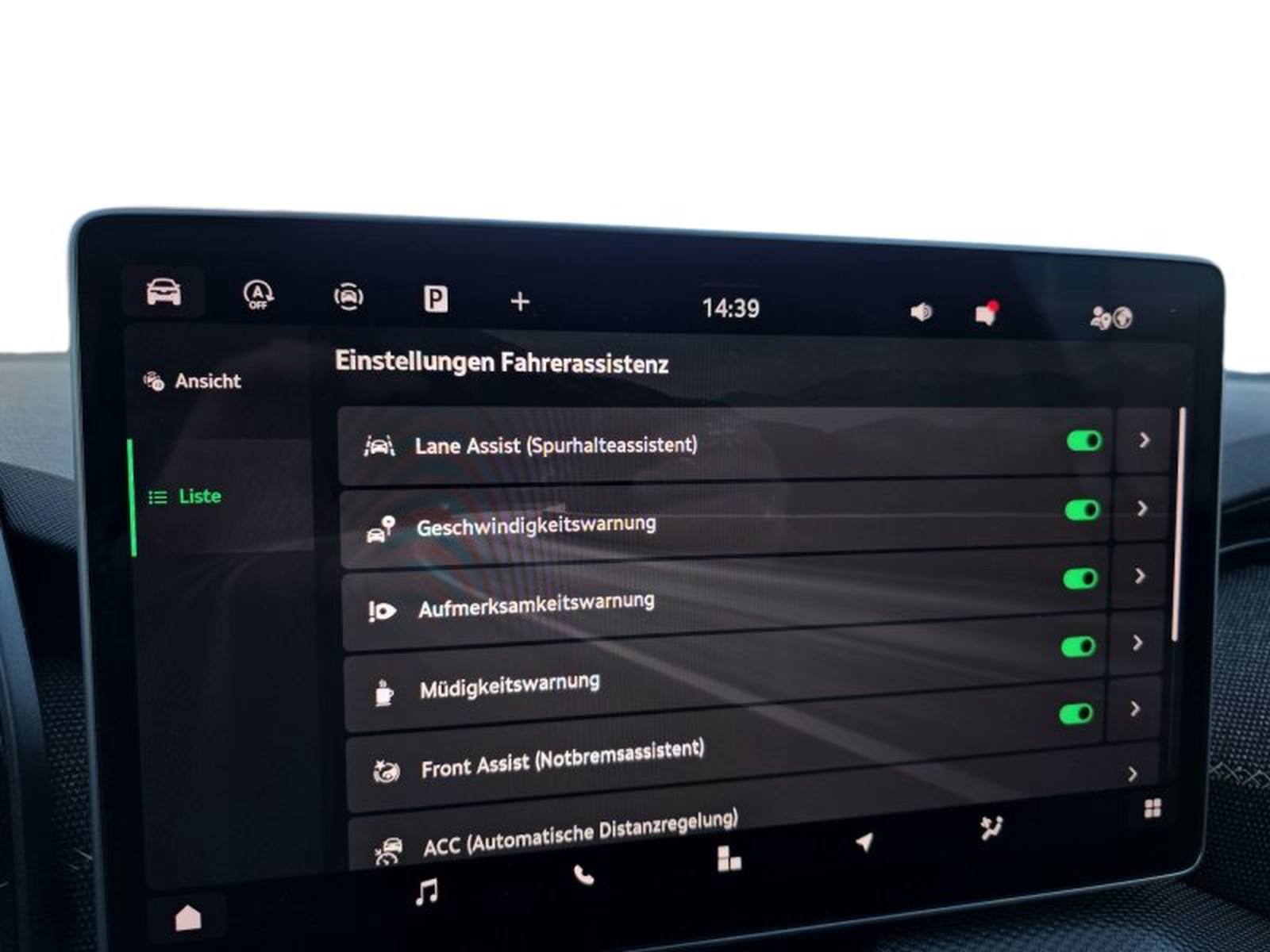 - Adaptiver Abstandsassistent ACC (Regelbereich bis 210 km/h) und Speedlimiter (Geschwindigkeitsbegrenzer)
