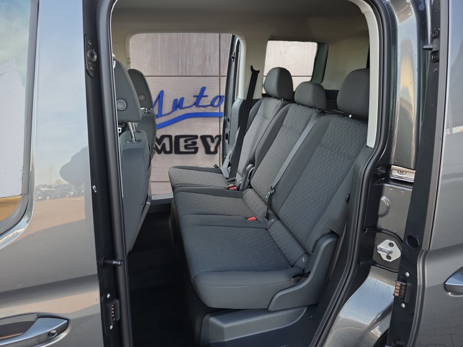Äußerlich verfügt das Fahrzeug über eine elegante Metallic-Grau-Lackierung, ergänzt durch stilvolle 16-Zoll-Leichtmetallfelgen. Der Einbau elektrisch verstellbarer, beheizbarer und klappbarer Seitenspiegel trägt sowohl zur Ästhetik als auch zur Funktionalität bei. Darüber hinaus verfügt der Transporter über Schiebetüren auf beiden Seiten für einen einfachen Zugang in engen Räumen.