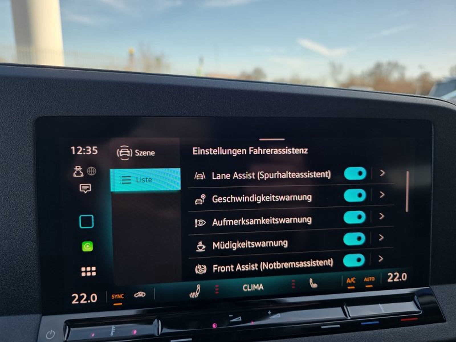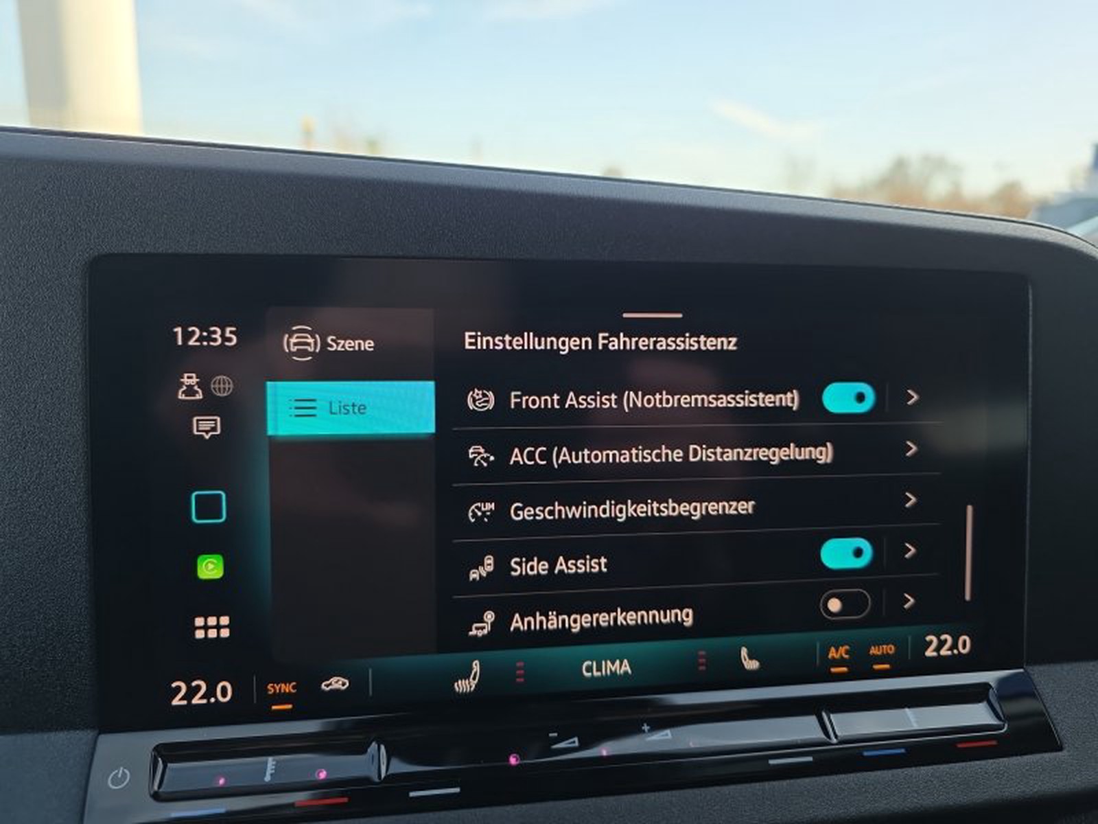 - Fahrassistenz-System: Spurwechselassistent (Side Assist) mit Auspark-Assistent und Ausstiegswarnung