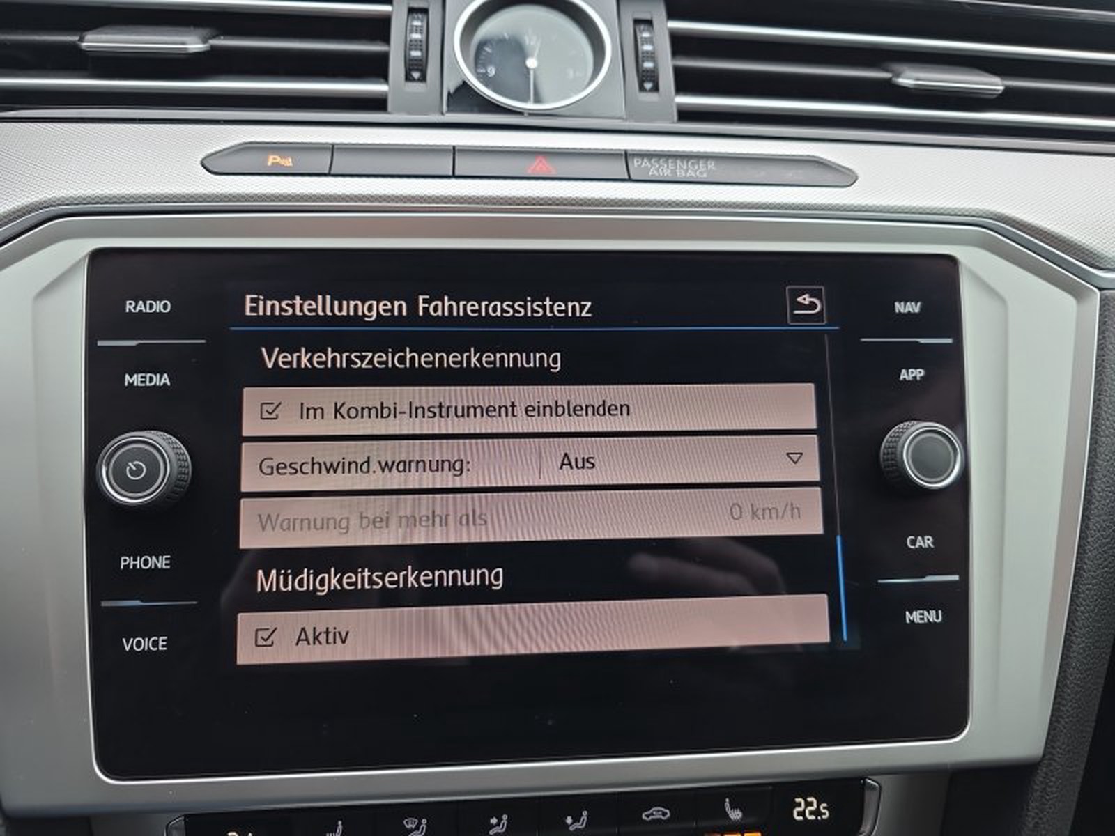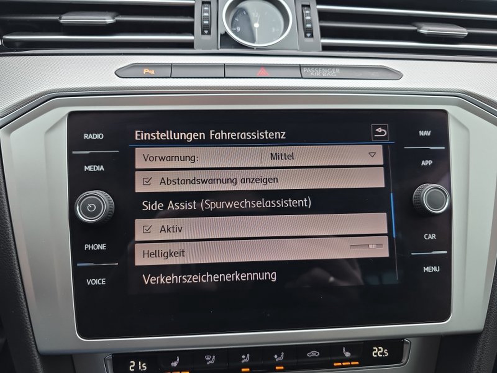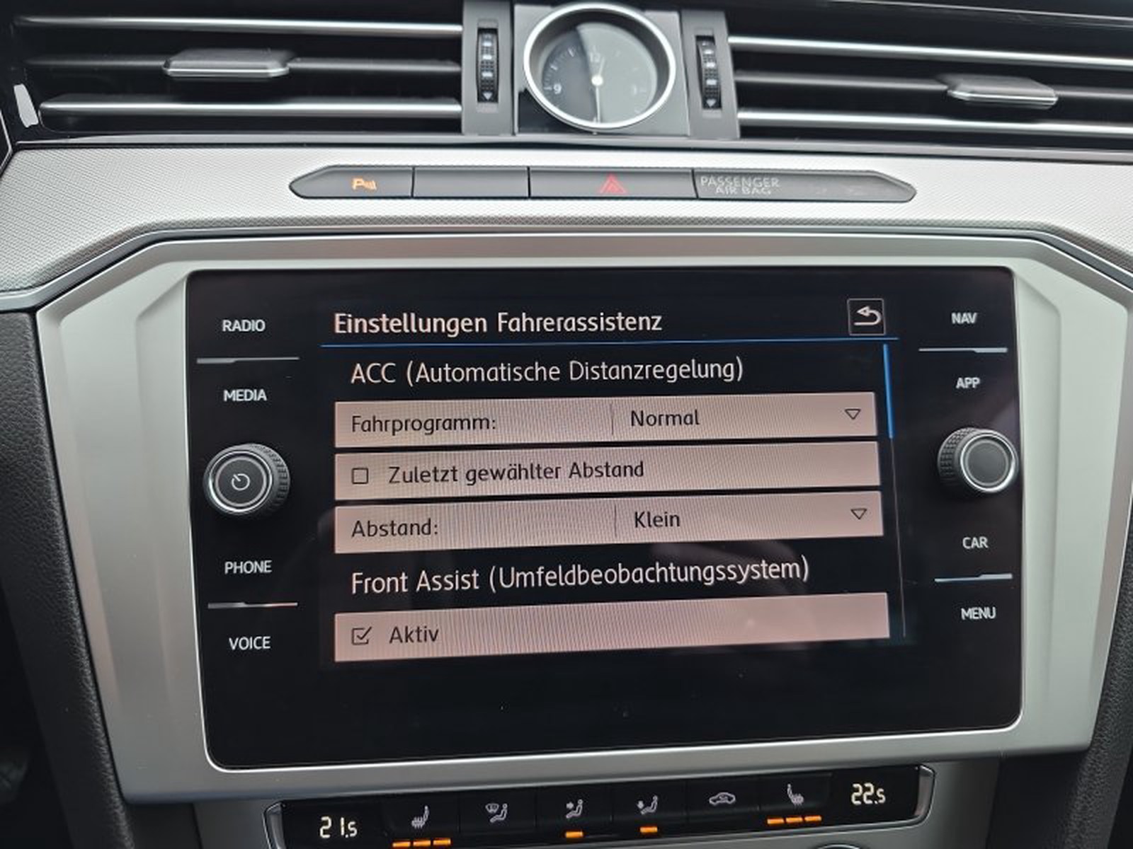 - Fahrassistenz-System: Autom. Distanzregelung (ACC) mit Umfeldbeobachtungssystem (Front assist, bis 210 km/h)
