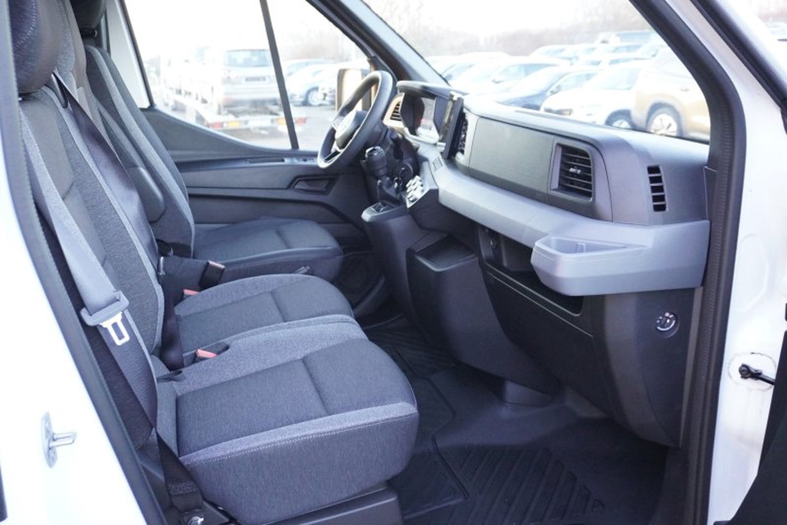 Der Innenraum bietet Platz für drei Personen und besticht durch praktische Details wie eine Dachablage oder eine geschlossene Laderaumtrennwand ohne Fenster – ideal für den professionellen Transportbedarf. Eine Laderaumverkleidung kann auf Wunsch kurzfristig nachgerüstet werden.